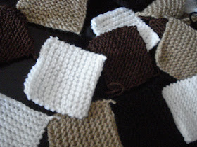 I have to admit, I did enjoy making them, even though it involved knitting 72 little squares;) (shown below). Next time I would like to try another technique, I think...