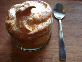 I have recently made a strawberry soufflé:). It is so easy to make, you just need to whisk 4 egg whites until stiff, then whisk in 2 tea spoons of sugar, fold in some fruits (strawberries, raspberries) or conserve, and pour the mix into four, lightly greased inside, ramekin dishes. Bake for about 15 minutes in 200C. The soufflé needs to be served at once, as it deflates quickly. It is really sweet, but light, foamy, perfect for a summer dessert. Actually, it does not feel like summer here (it is rather cold, and grey), but at least I can pretend a little;)...