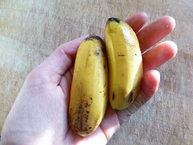 Sprobowalam odtworzyc ten przysmak w domu, mielismy w torbie kilka bananow, jeszcze lokalnych, ktorych nie zdazylismy zjesc w samolocie. Dojrzale, az za bardzo, ale podobno takie sa najlepsze:).